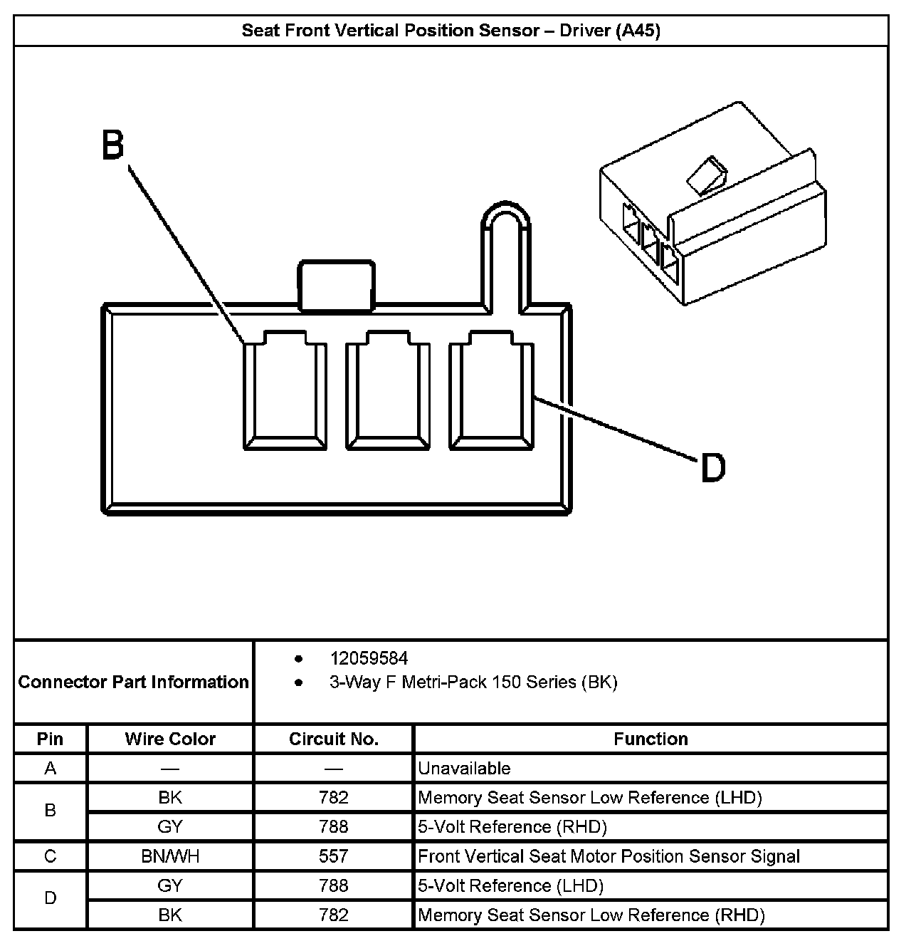 Seat Front Vertical Position Sensor - Driver (With RPO Code A45):
