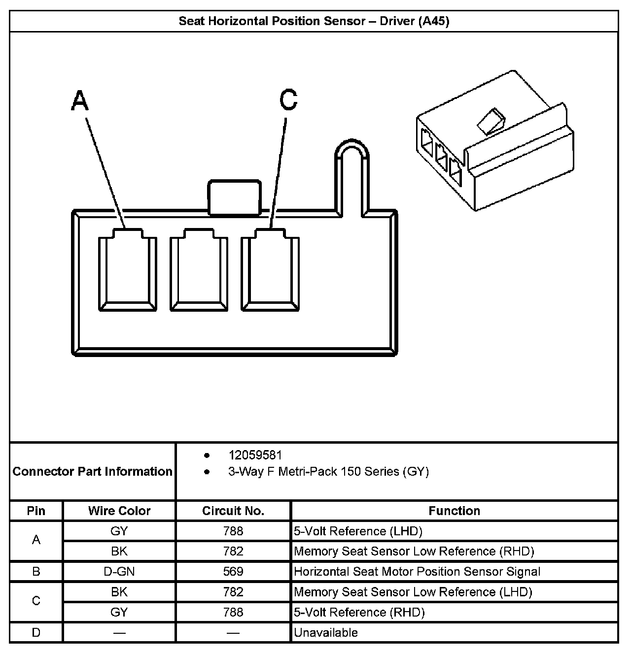 Seat Horizontal Position Sensor - Driver (With RPO Code A45):
