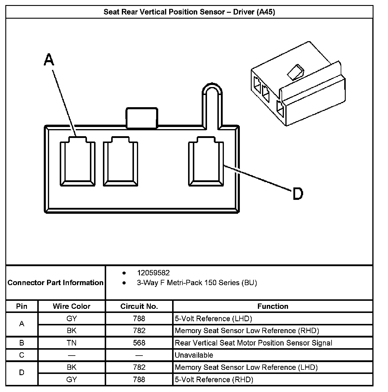 Seat Rear Vertical Position Sensor - Driver (With RPO Code A45):