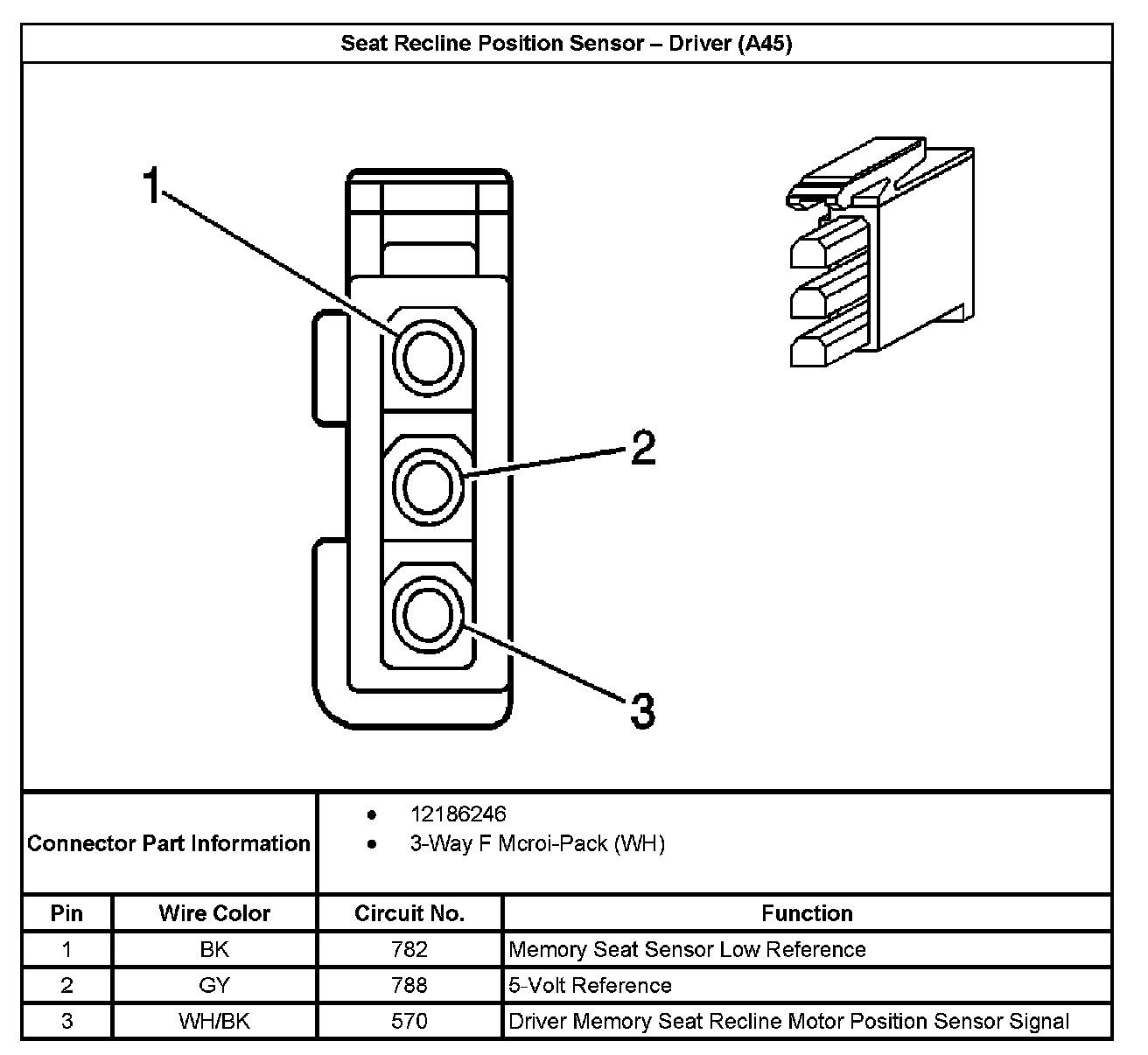 Seat Recline Position Sensor - Driver (With RPO Code A45):
