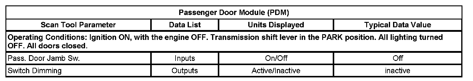 Scan Tool Data List - Passenger Door Module (PDM)