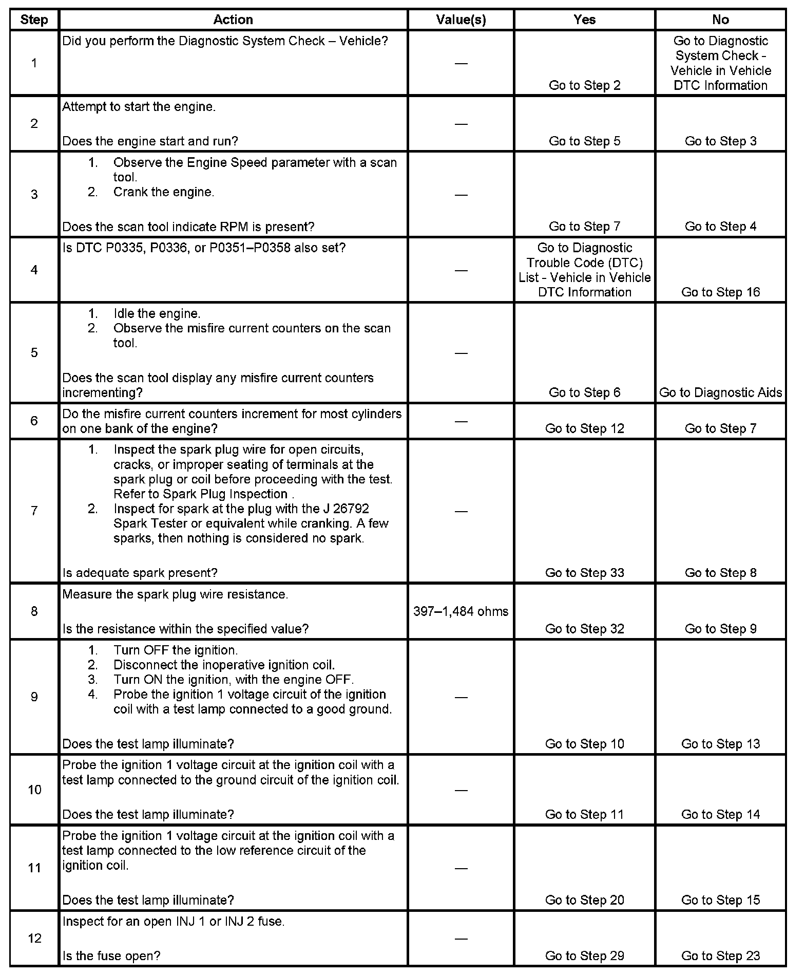 12. A good indication that the fuse is open is all of the misfire current counters are incrementing on one side of the engine. Inspect the ignition positive voltage circuit for a grounded circuit. If the fuse is open and the ignition coil circuits are OK, inspect the injector circuits for being grounded.