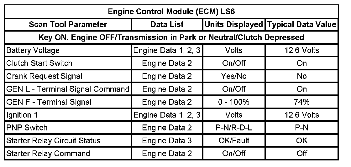 Normal Scan Tool Data Values