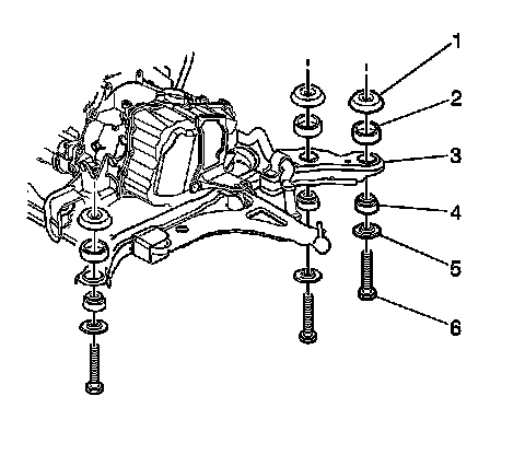 4. If the frame insulator bolt does not screw in smoothly, run a tap through the cage in the body in order to remove the foreign material. Ensure that the tap does not punch through the underbody. Position the insulator and the metal washer in order to prevent contact with the frame rail. Do not over tighten the insulator nut. Overtightening the nut may strip the cage nut.