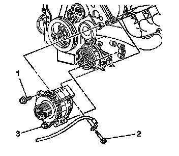 7. Loosen the lower generator bolt (3).