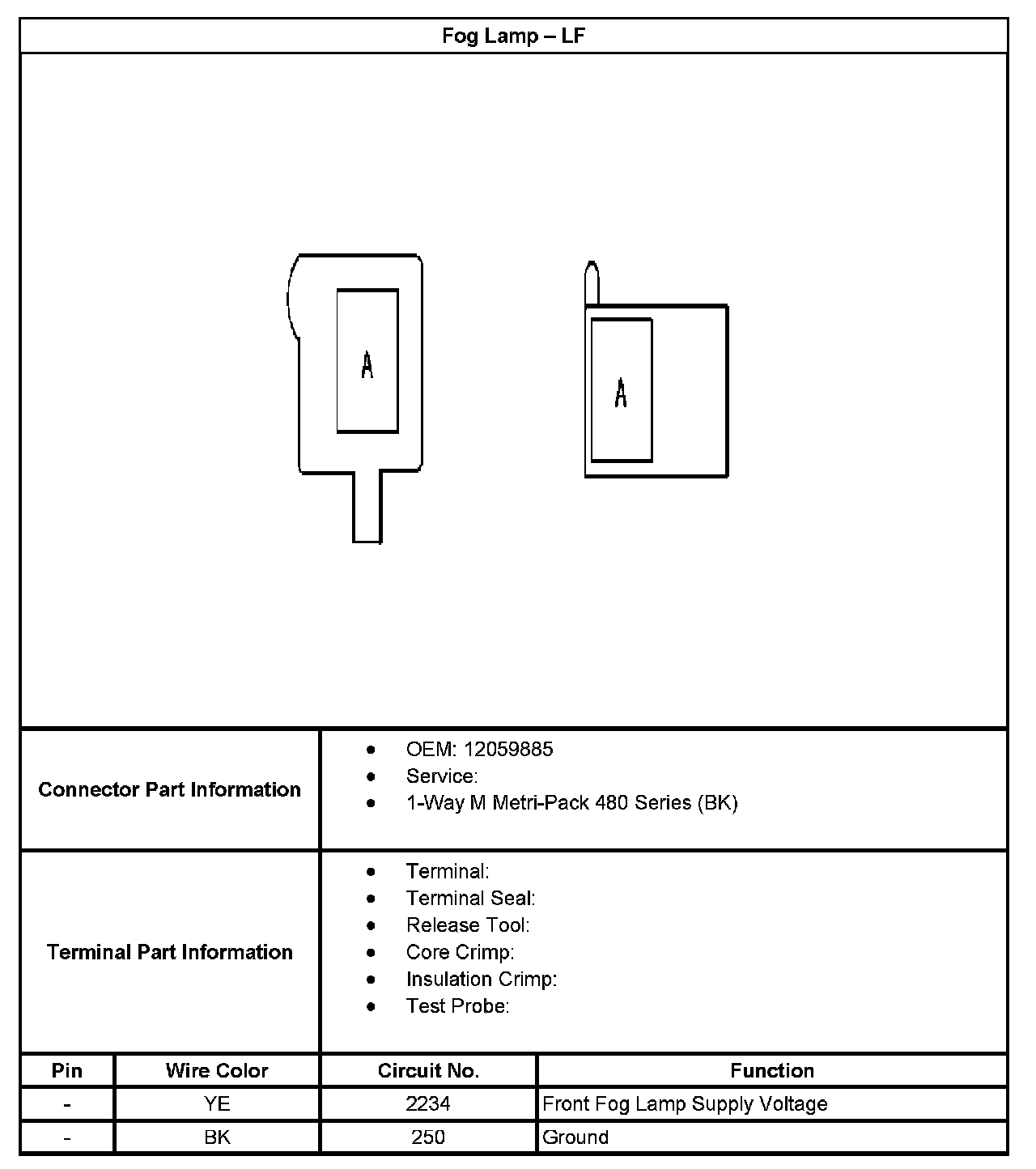 Fog Lamp - LR (With RPO Code TT7 And TT8):