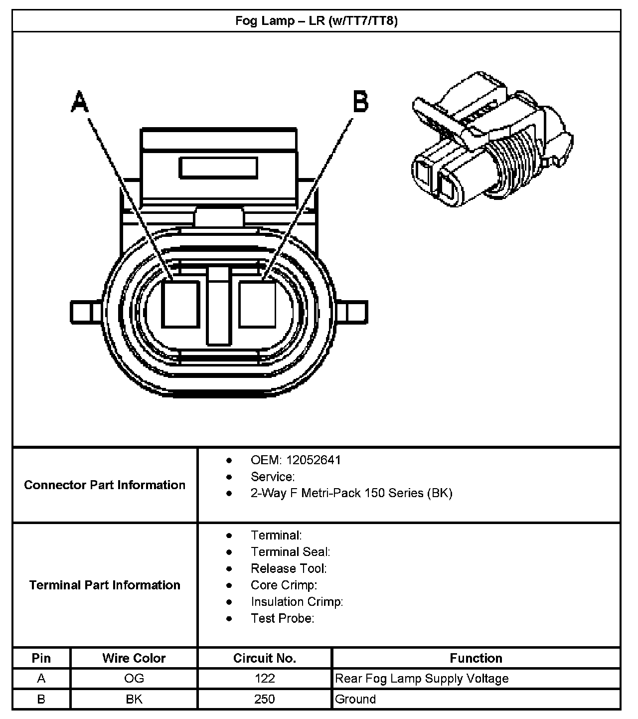 Fog Lamp - RR (With RPO Code TT7/TT8):