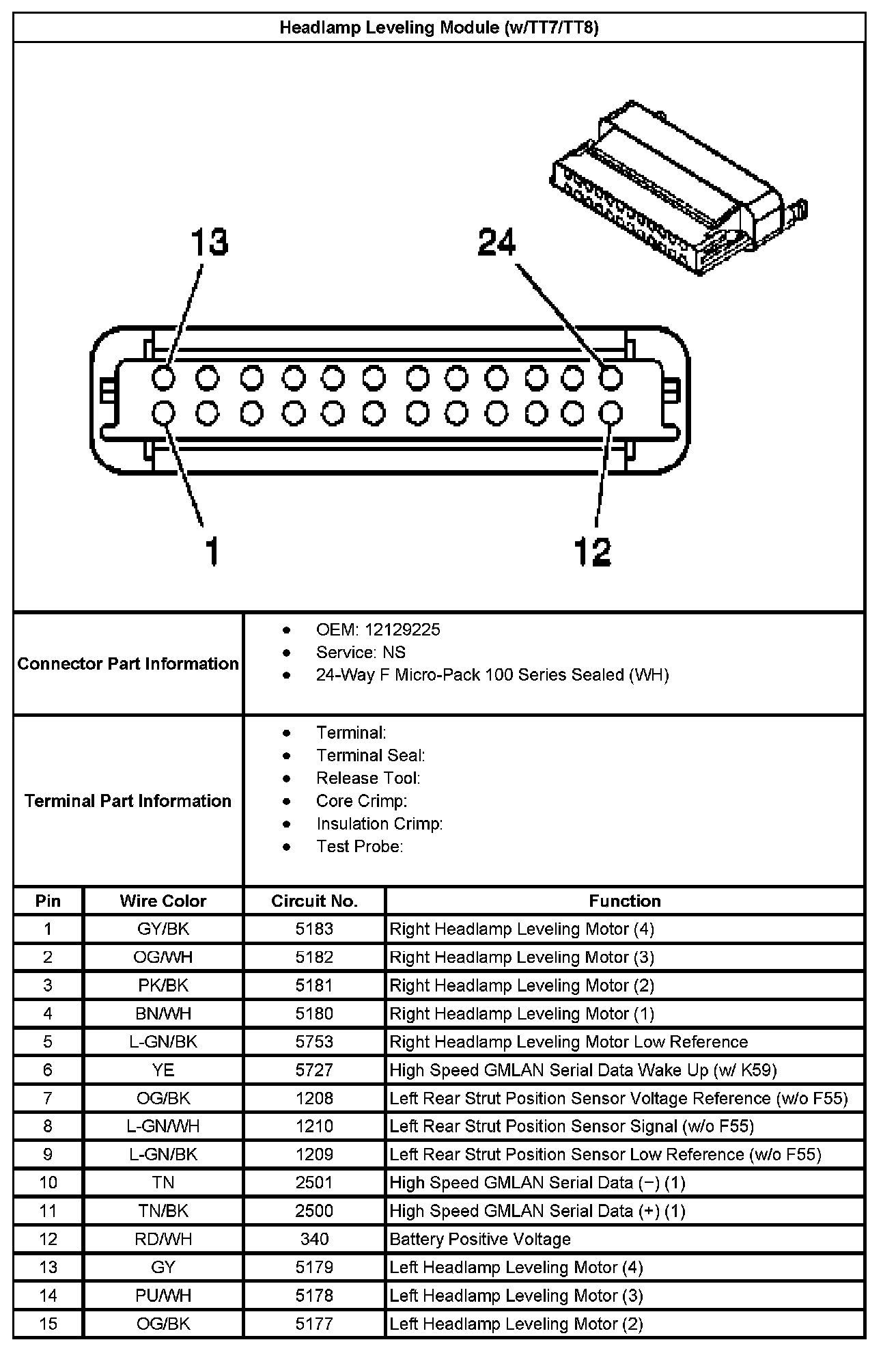Headlamp Leveling Module (With RPO Code TT7/TT8) Part 1: