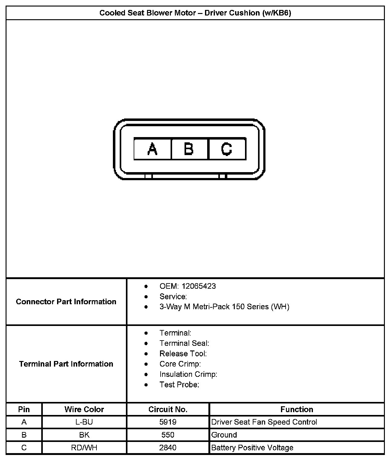 Cooled Seat Blower Motor - Driver Back (With RPO Code KB6):