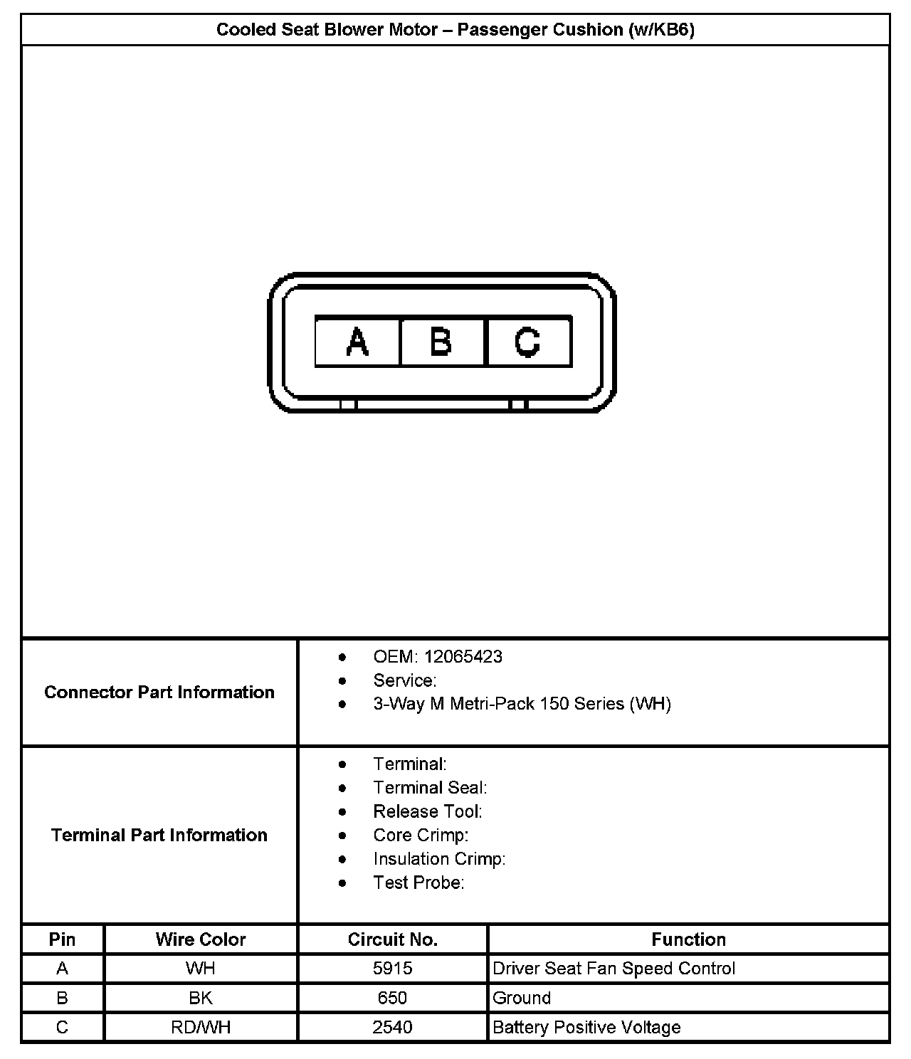 Cooled Seat Blower Motor - Passenger Back (With RPO Code KB6):