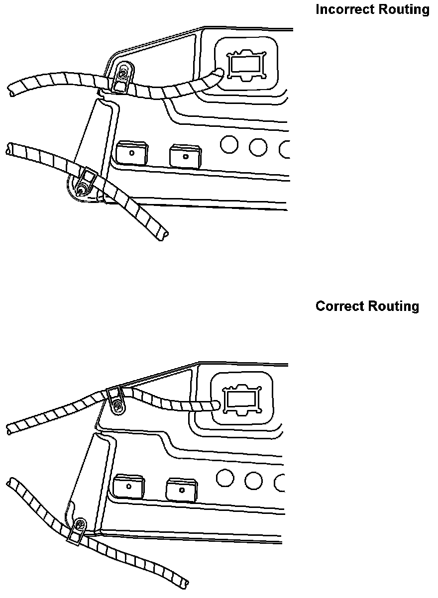 4. If the clip is found with improper orientation, disconnect the clip from the stud and inspect the wires for insulation damage where the harness contacted the metal bracket.