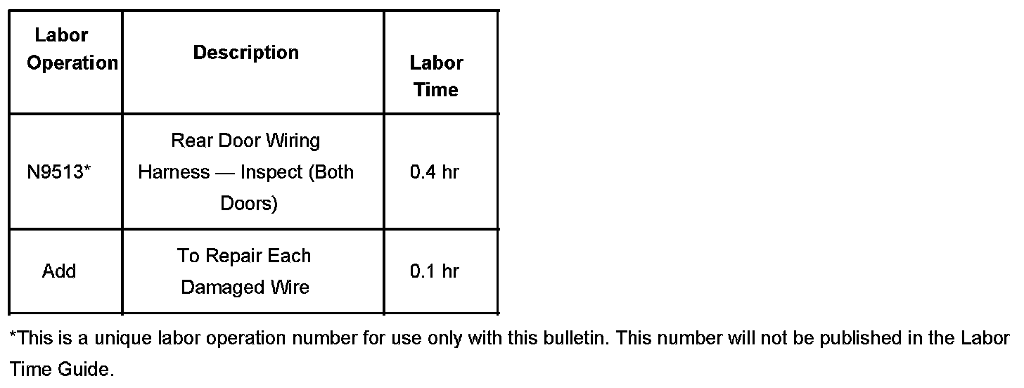 These conditions may be caused from the rear door wiring harness being misrouted causing the harness to contact the metal door bracket. This contact may cause a rub through to the wires enclosed in that harness.