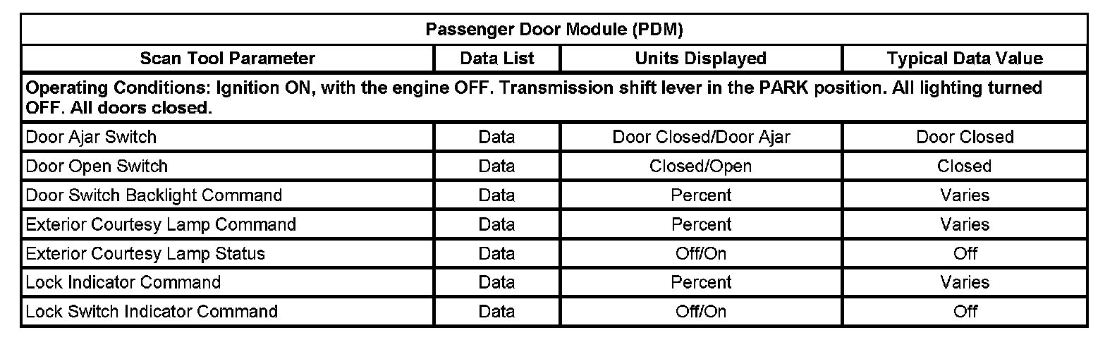 Scan Tool Data List - Passenger Door Module (PDM)
