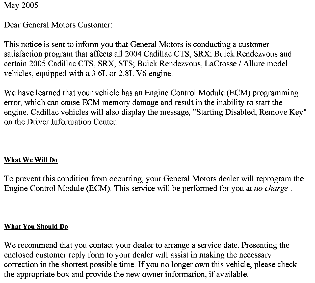 Campaign - ECM Reprogramming for Software Error