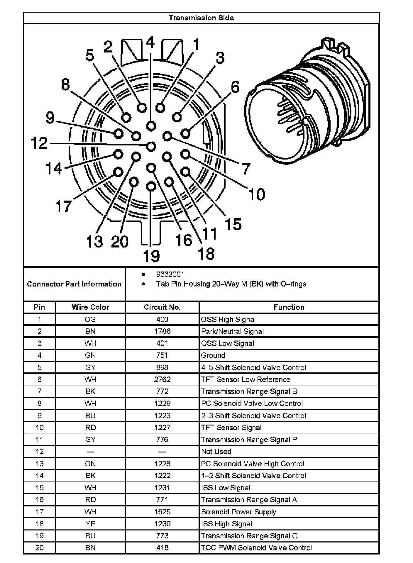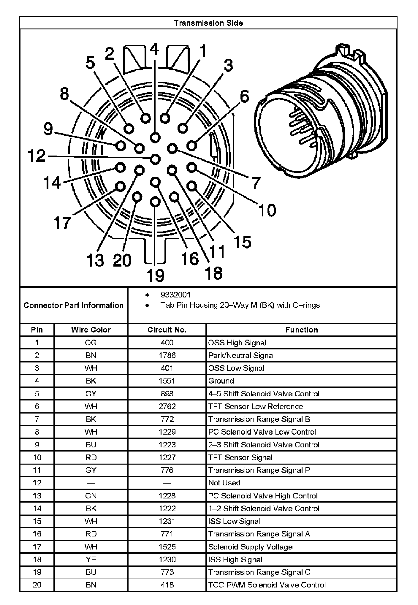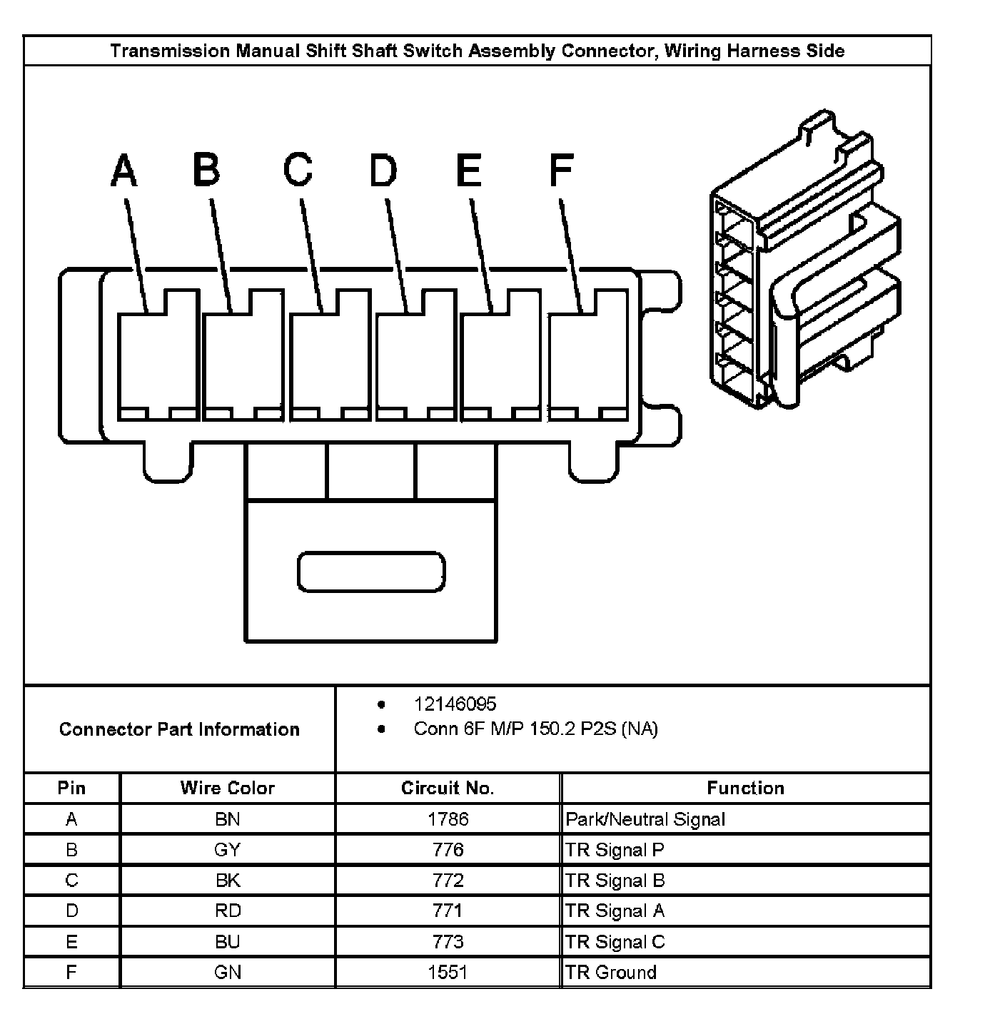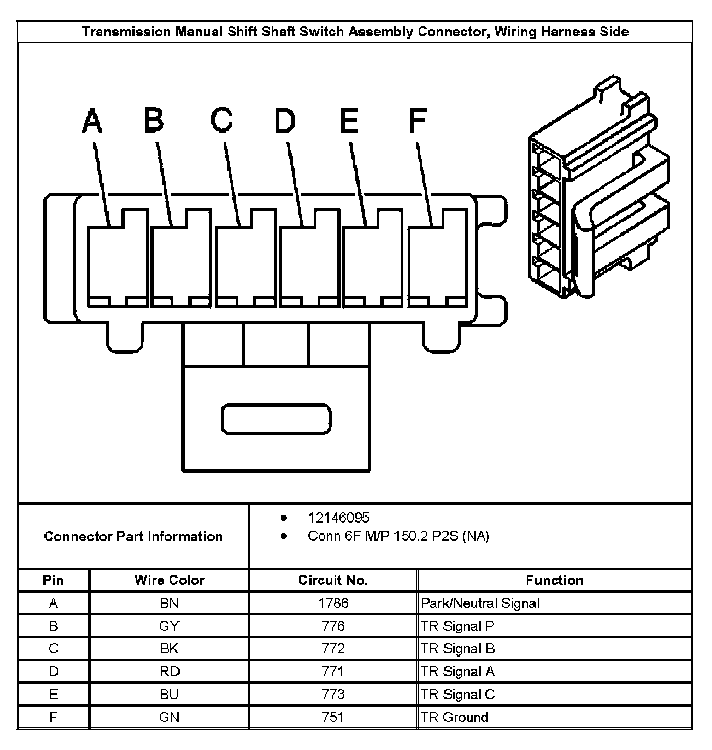 Transmission Manual Shift Shaft Switch Assembly Connector, Wiring Harness (5L40-E):