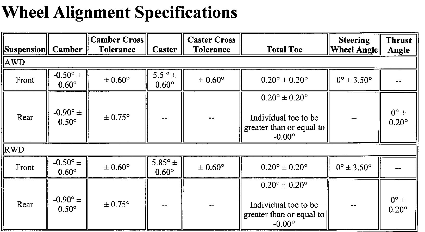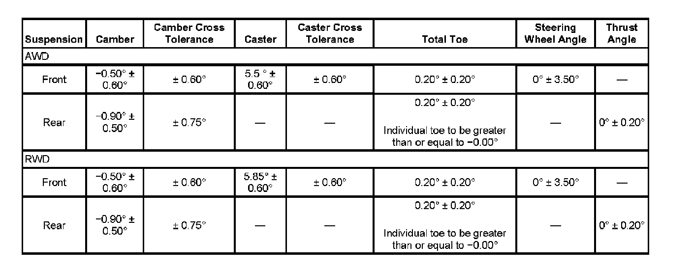Wheel Alignment Specifications