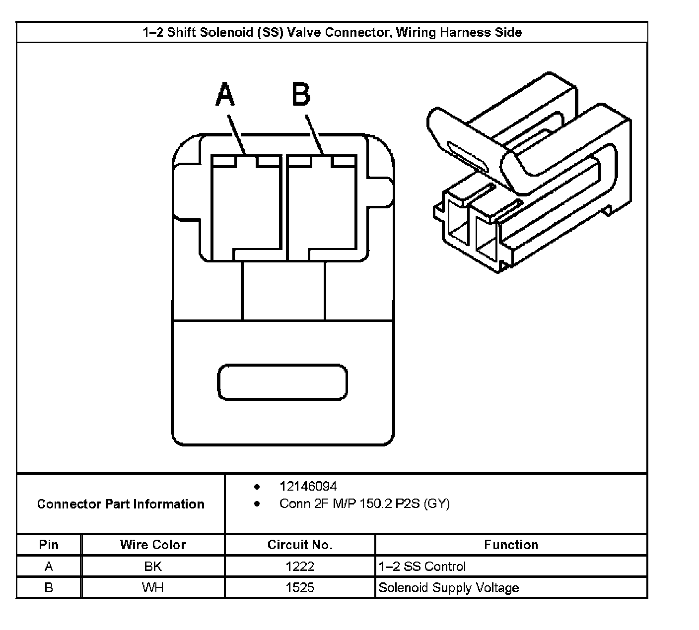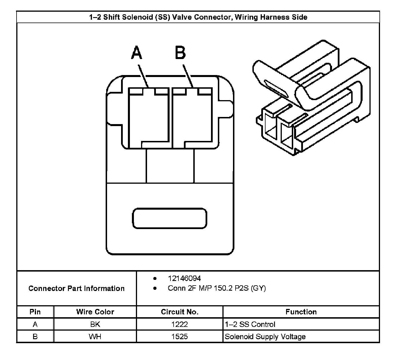 1-2 Shift Solenoid (SS) Valve Connector, Wiring Harness Side (5L50-E):