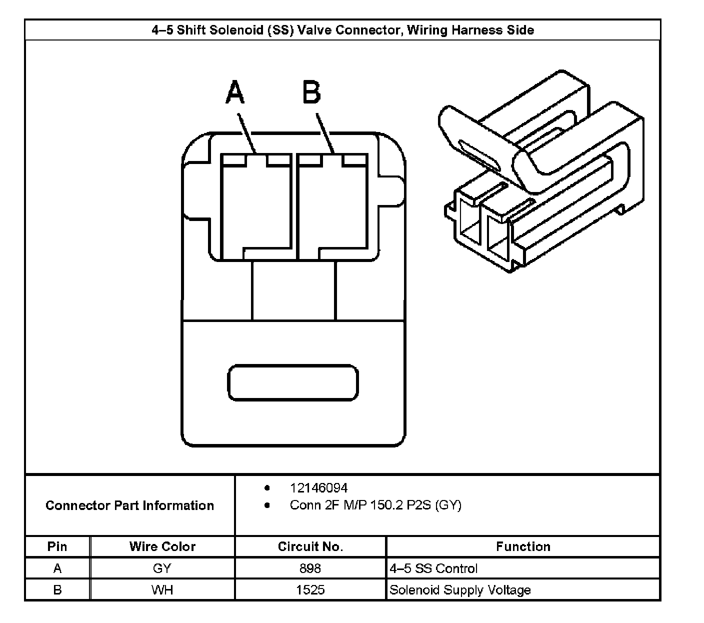 4-5 Shift Solenoid (SS) Valve Connector, Wiring Harness Side (5L40-E):