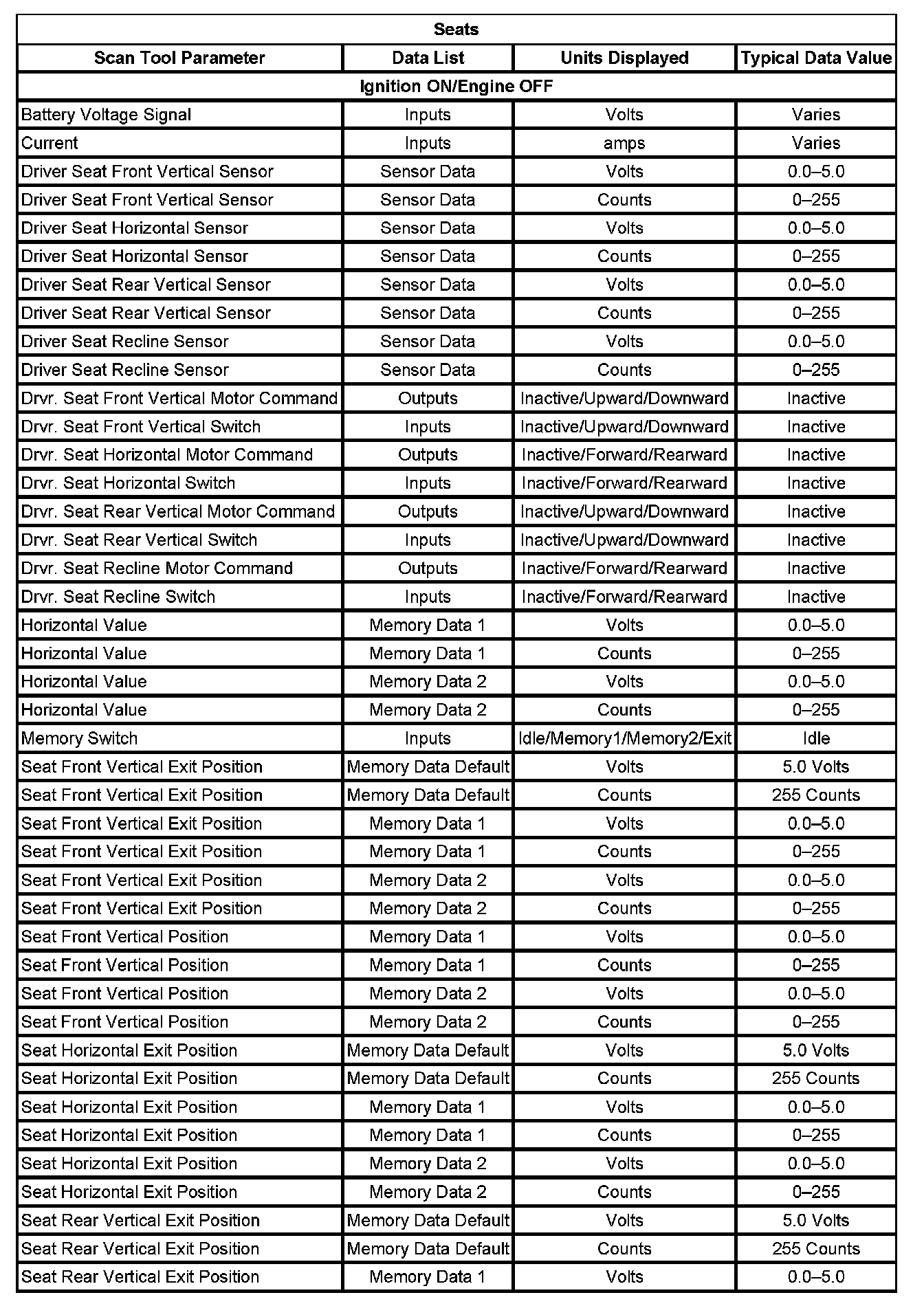 Scan Tool Data List