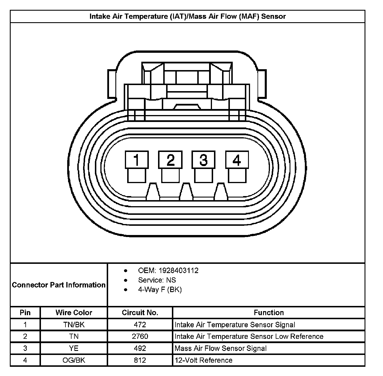 Intake Air Temperature (IAT)/Mass Air Flow (MAF) Sensor: