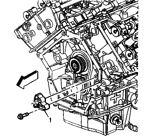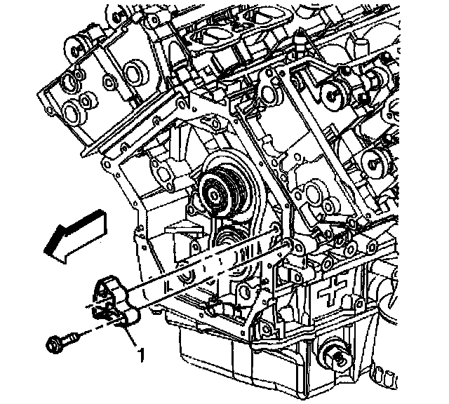 4. Remove the two bolts attaching the primary camshaft drive chain guide (1) to the engine block.