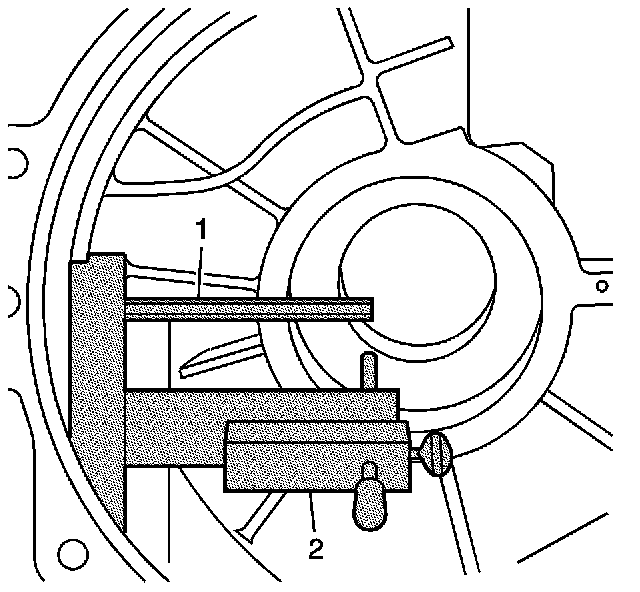 7. Measure the gap (1) between the rod and the post on J45013-6 (2). Record the measurement as C1.