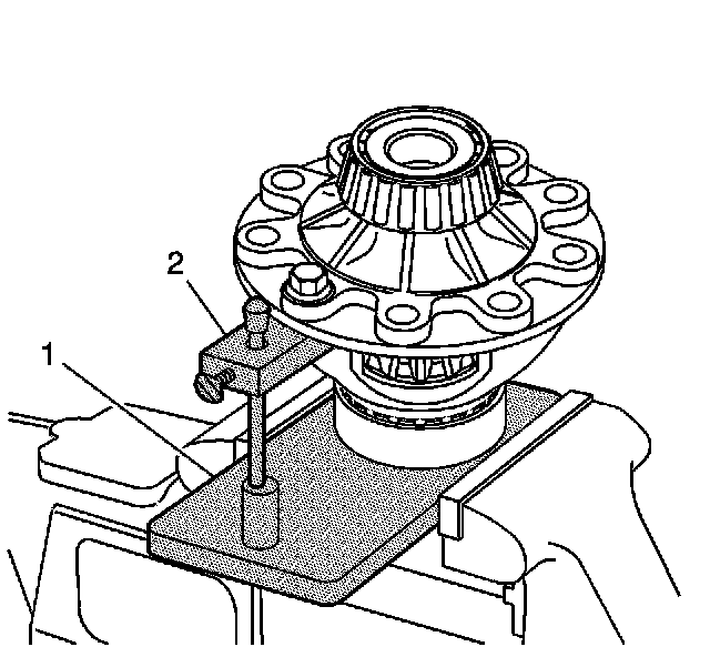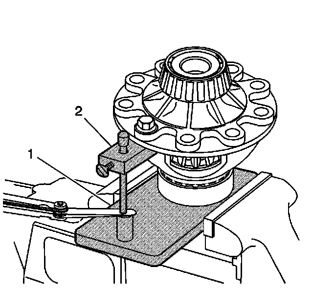 4. Use an old ring gear bolt. Attach the J45013-6 (2) to the differential case as shown.