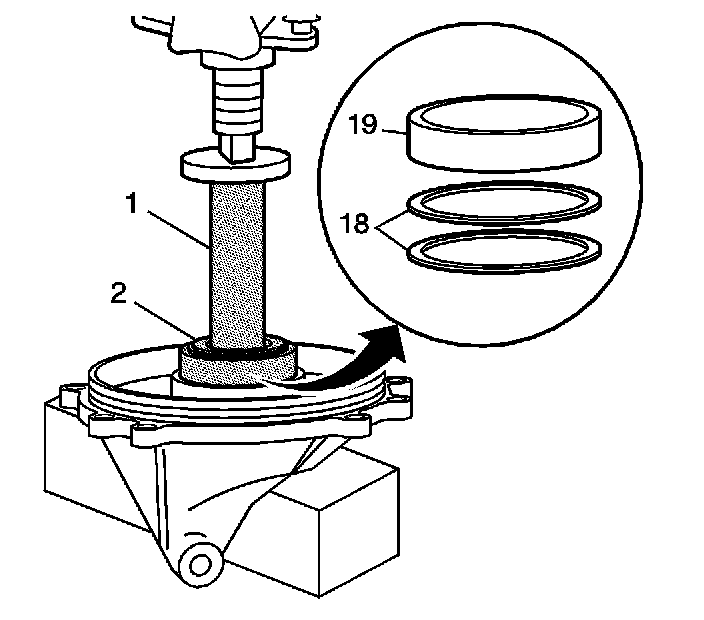 18. Using J24433 and J45010 and a press, install the bearing cup until it seats.