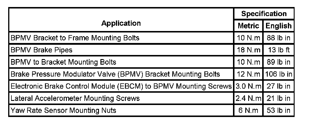 Fastener Tightening Specifications: