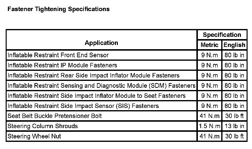 Fastener Tightening Specifications: