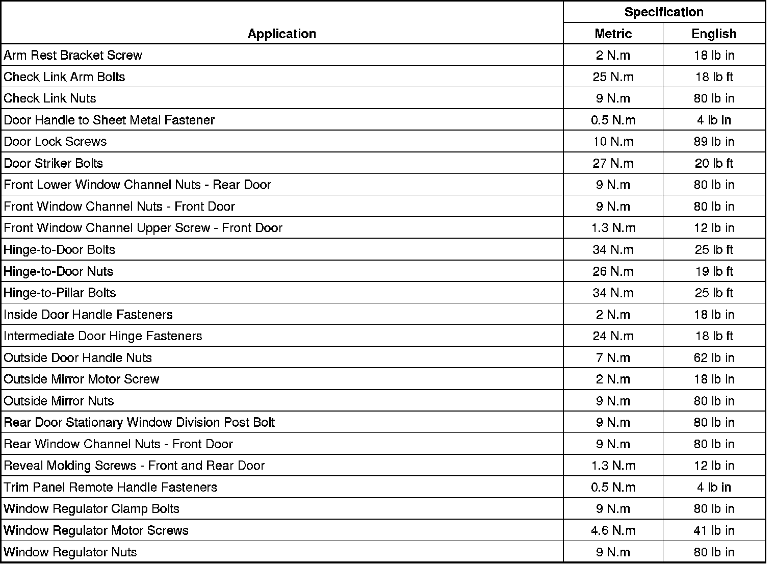 Fastener Tightening Specifications