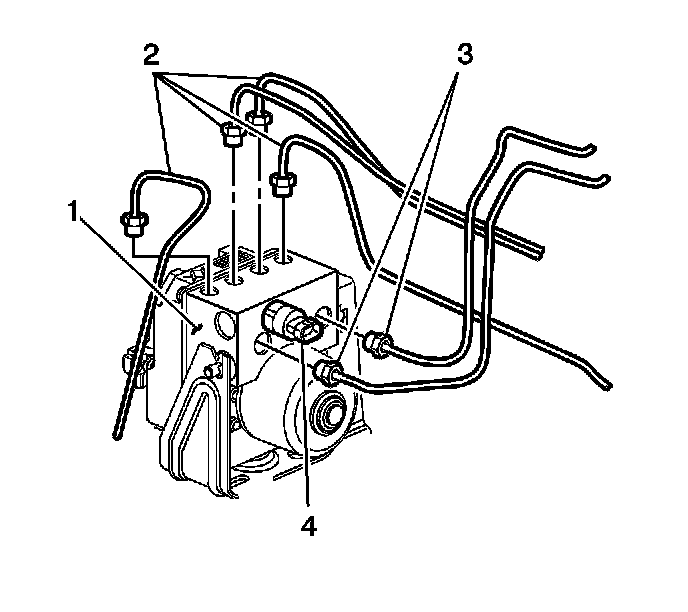 3. Make sure that the internal pump motor connector (3) is installed into the new EBCM (1) prior to EBCM replacement.