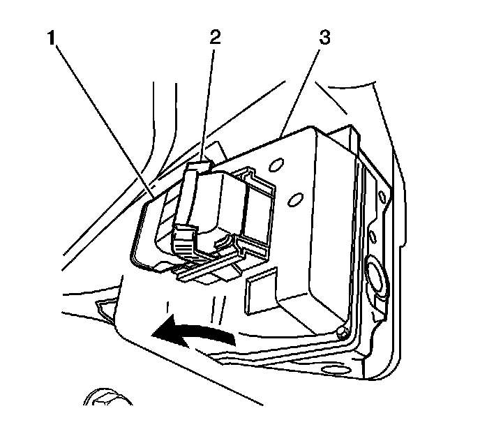 11. Rotate the EBCM connector tab (2) forward to the unlocked position.
