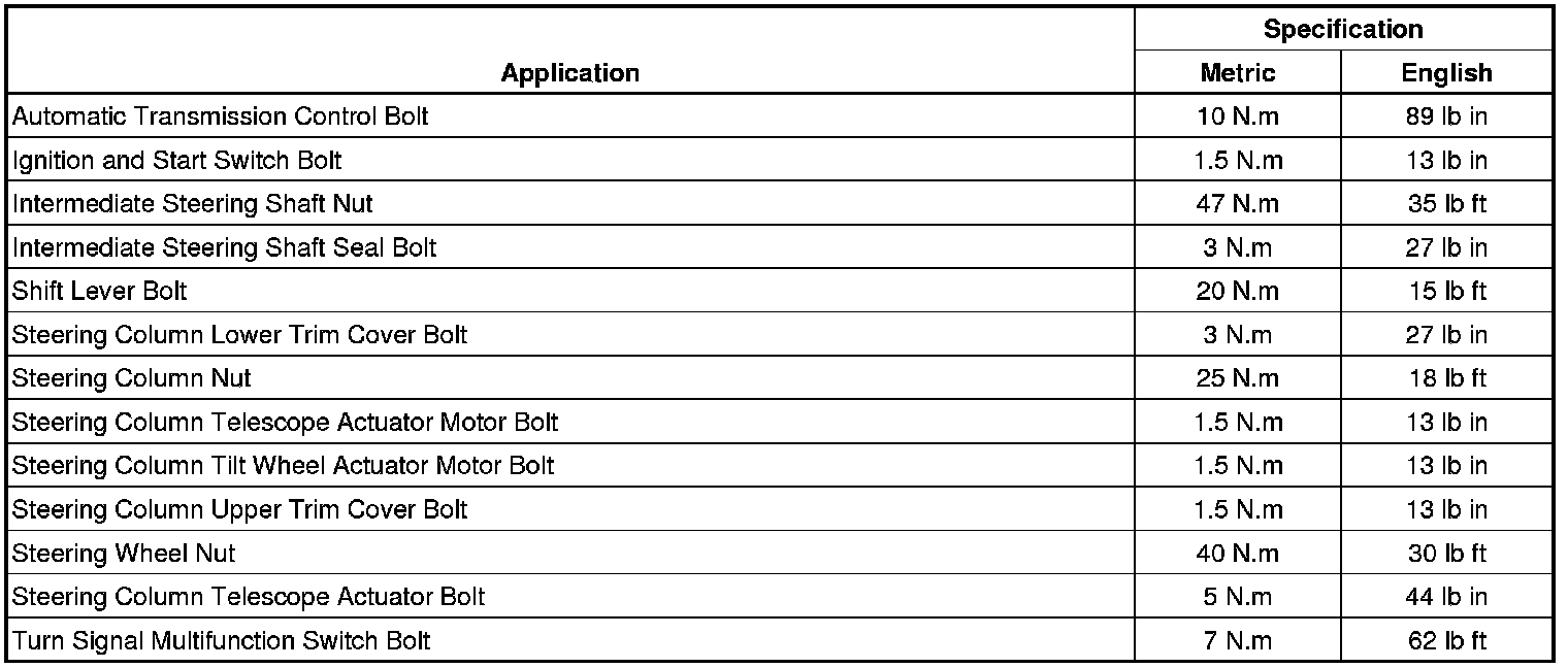 Steering Column: Specifications