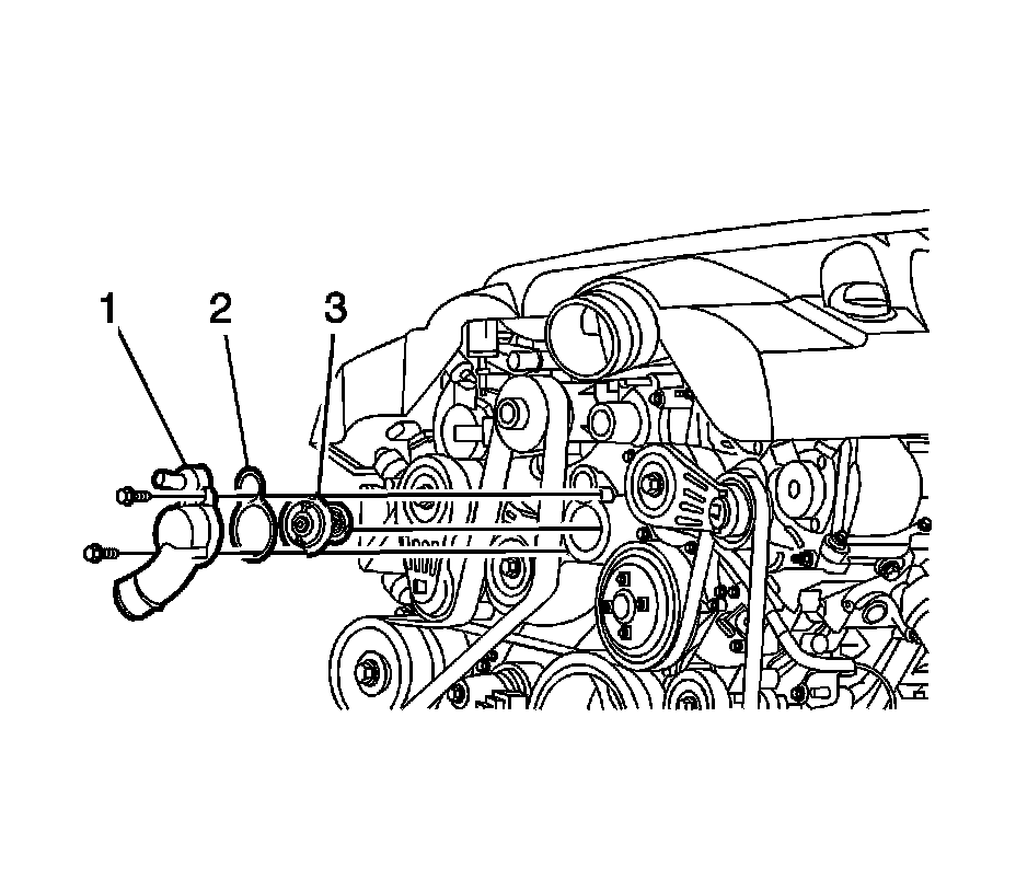 2. Install the thermostat (3) to the thermostat housing (1).