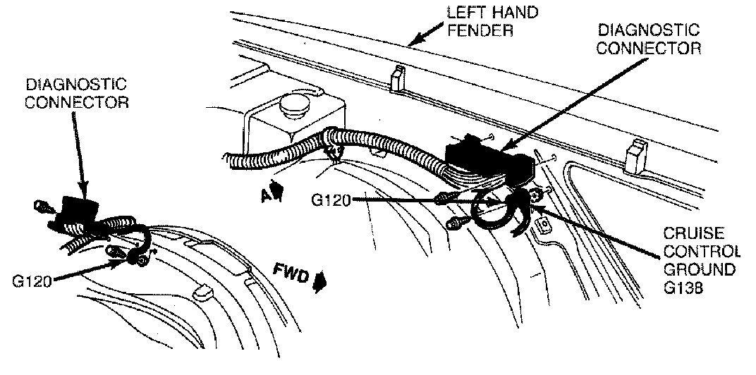 The Diagnostic Connector is located left front of fender apron.