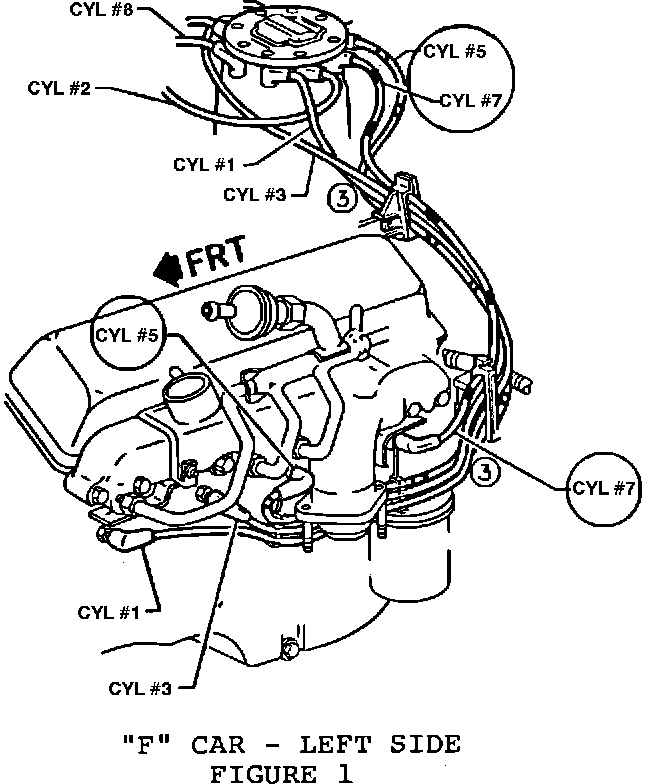 The following figures show the recommended spark plug wire routing for complaint vehicles.