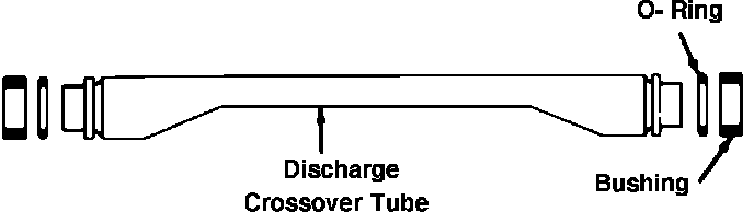 6. Without using any O-rings or bushings, assemble one end of new discharge cross-over tube into hole in front cylinder half, Figs. 43 and 44, ensuring flattened section of tube faces inside of compressor to allow for axial clearance.