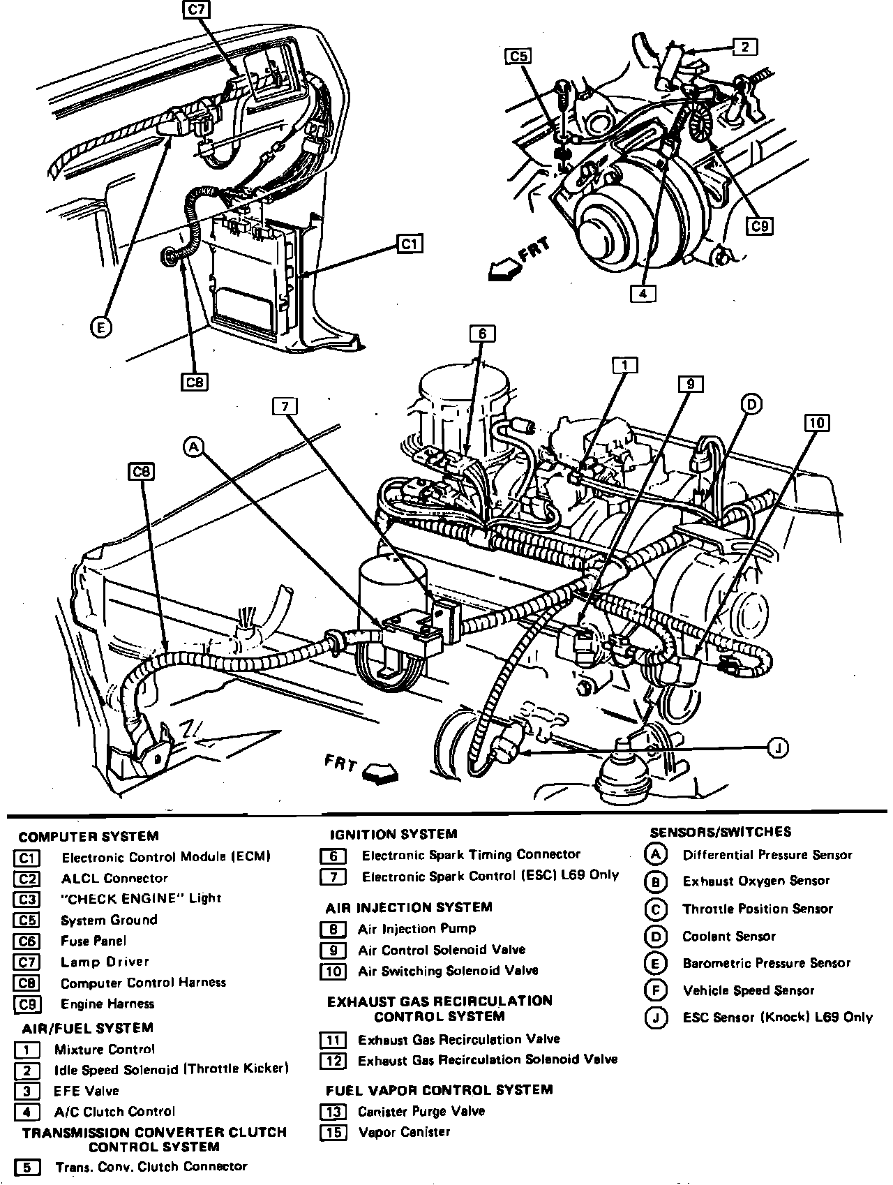 Fig. 12a Emission Control System Components (Part 1 of 2). 1984 V8-305 & 350 Chevrolet: