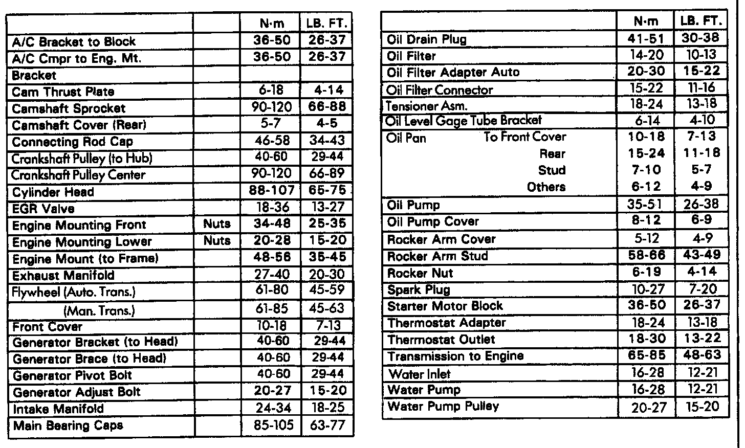 Torque Specifications: