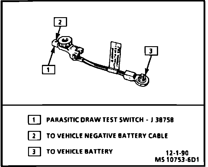 Tools needed: - J 38758 Parasitic Draw Test Switch (Figure 1)