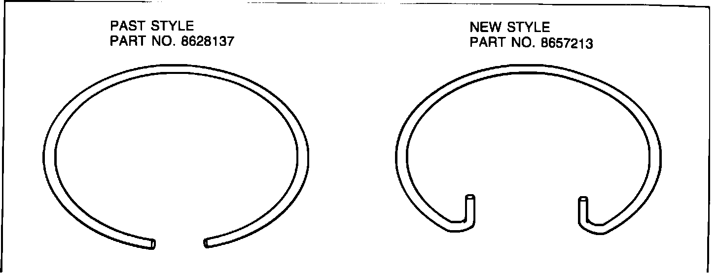 The past style servo cover retaining ring part number 8628137 (without tangs), can be used with the past style (with notches) case intermediate servo bore. The new servo cover retaining ring part number 8657213 (with tangs), can be used with either style case intermediate servo bore.