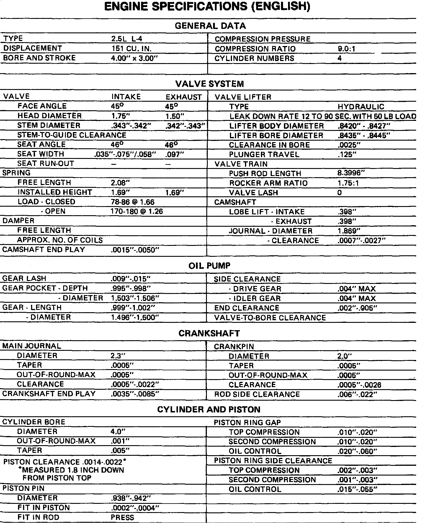 Engine Specifications: