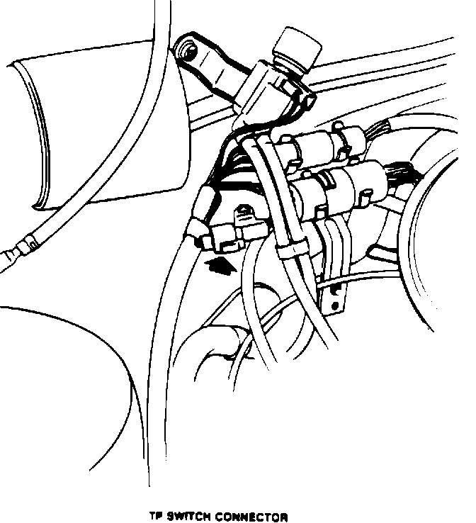 (F). With Engine running at idle, slowly increase idle speed by opening throttle to 1600 RPM. OHM meter should register open circuit. If OHM meter shows a closed circuit (continuity) adjust "TP" switch adjusting screw to give an open circuit (See Figure #1).