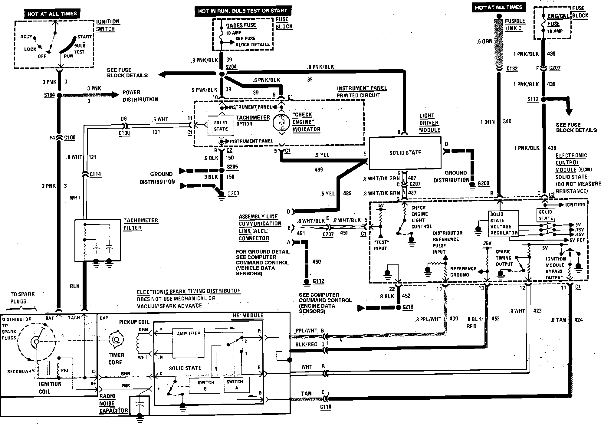 Computer Command Control Wiring Circuit (Service Engine Soon Indicator & Tachometer). W/V8-305/5.0L (VIN H):