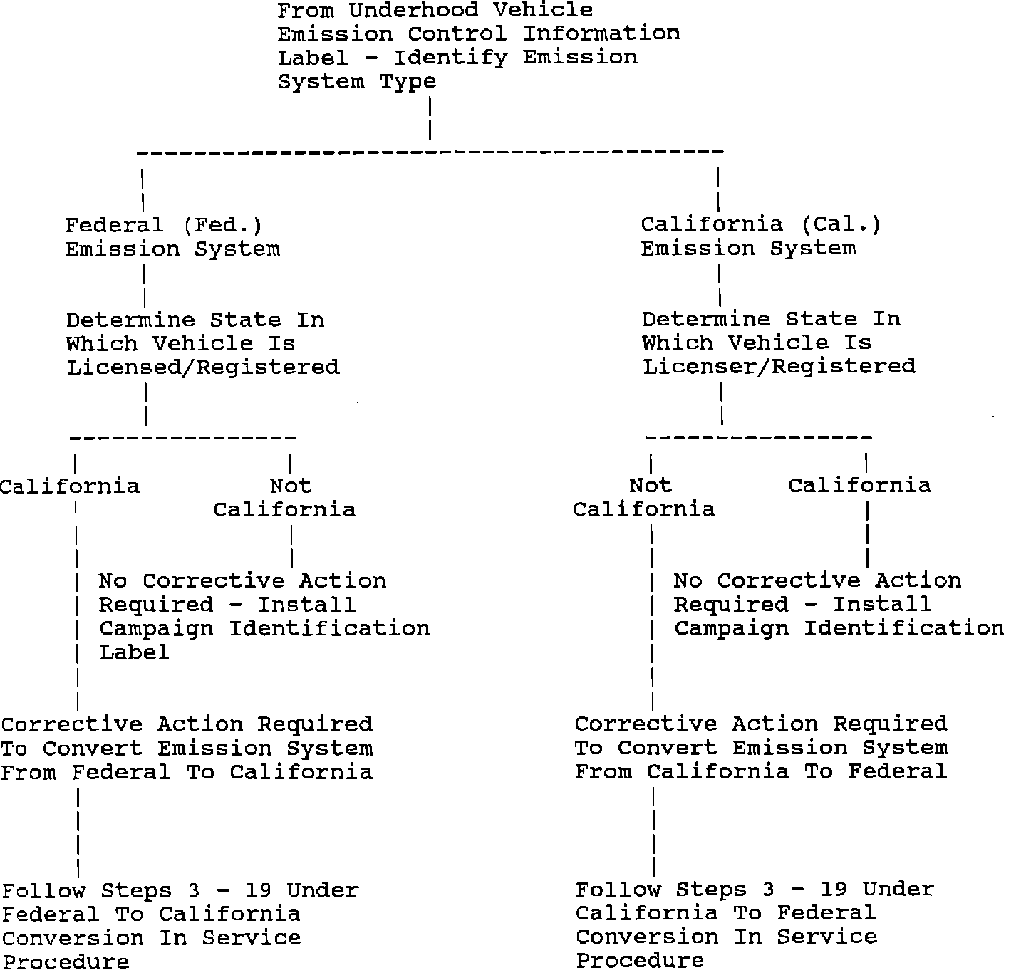 1. Determine which emission system is installed on vehicle by inspecting vehicle emission control information label on underside of engine hood panel.