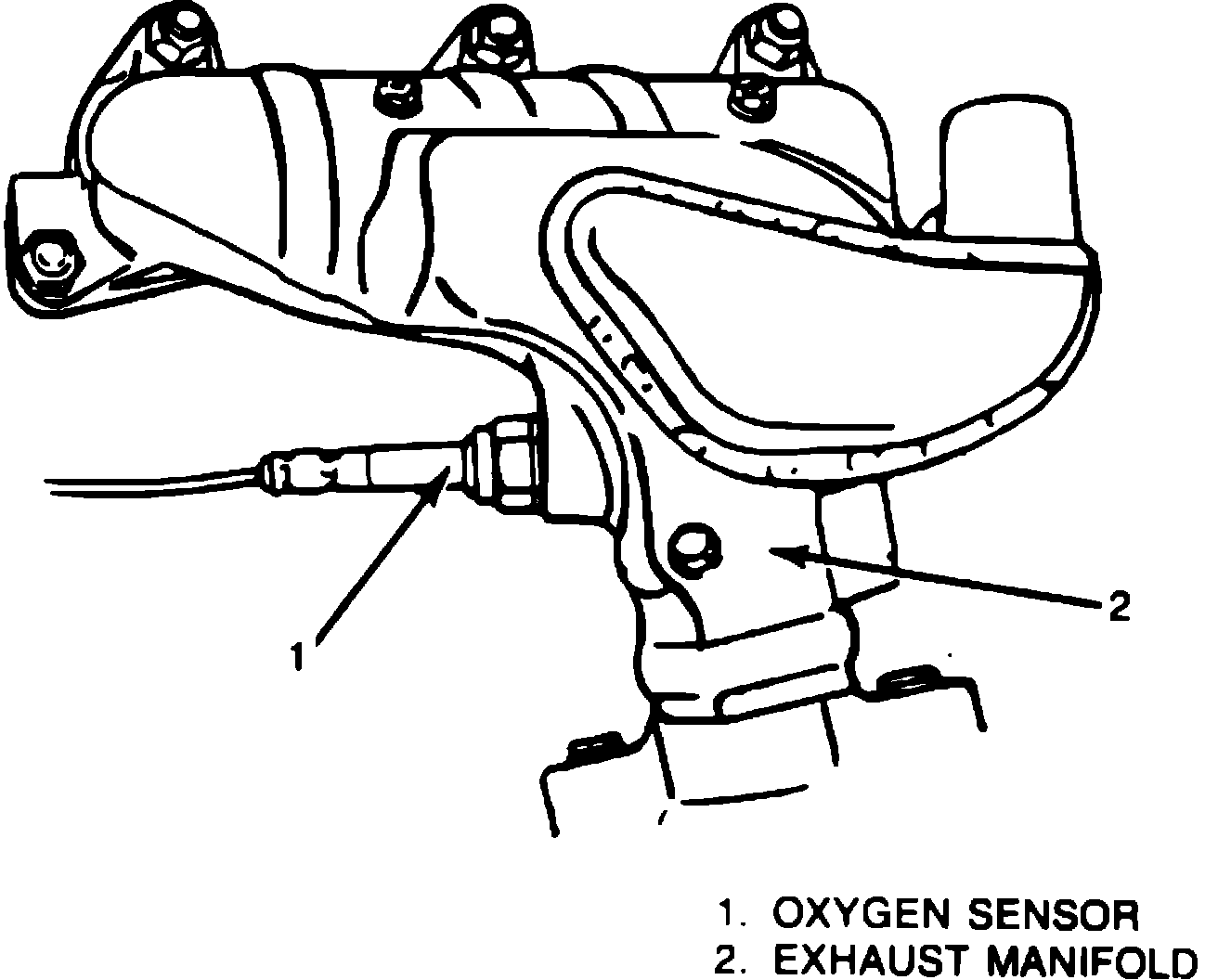 Exhaust oxygen content (air/fuel mixture) is monitored by an exhaust manifold mounted oxygen sensor, Fig. 2.
