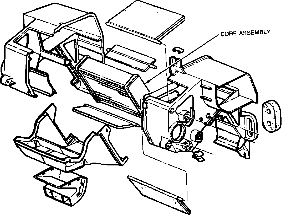 4. Carefully pry open lower part of heater case and remove heater core, Fig. 9.