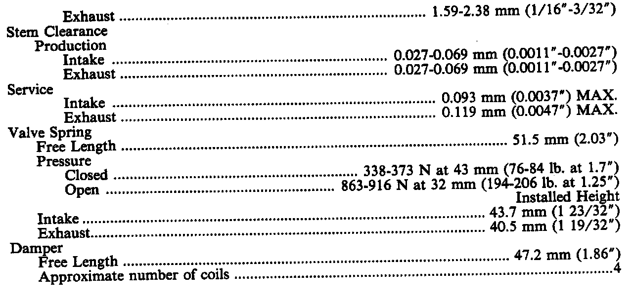 General Engine Specifications: