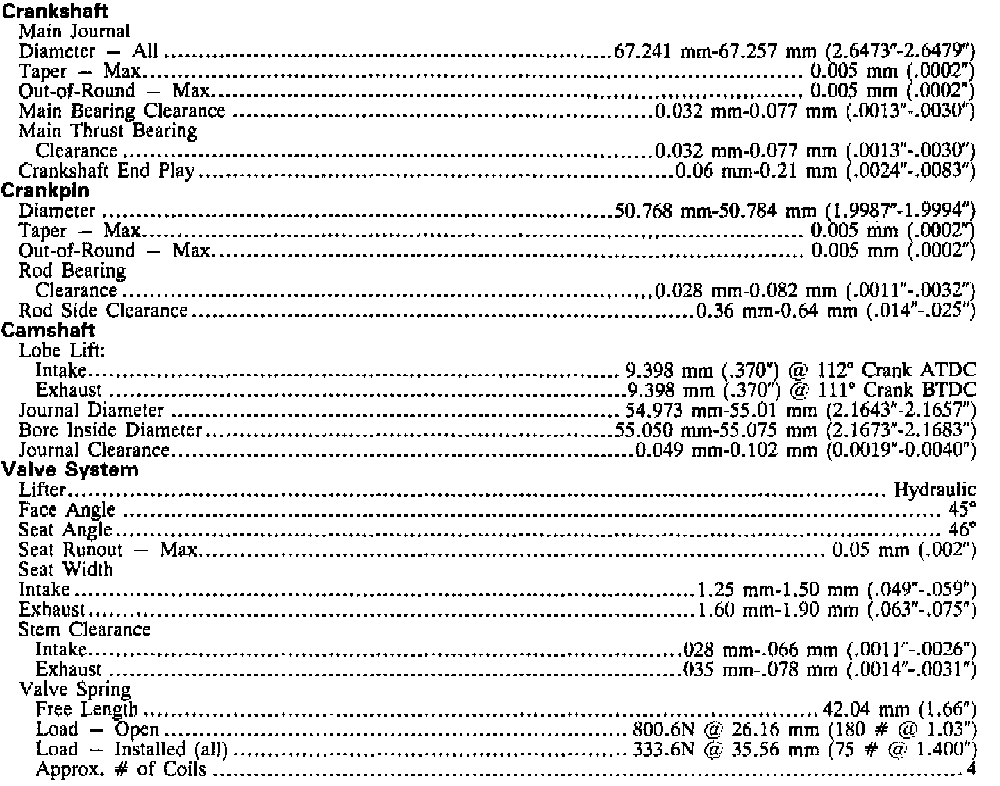Engine Specifications: